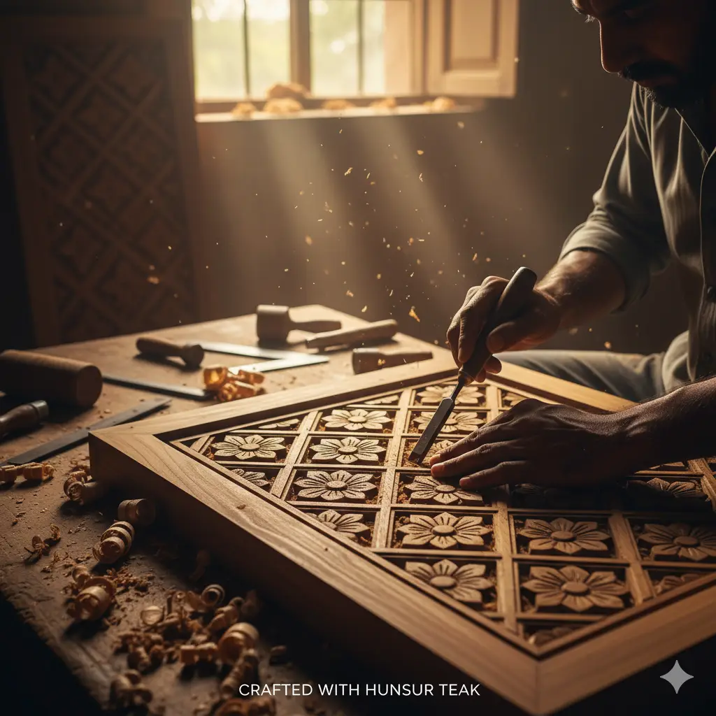 We deal exclusively in authentic Hunsur teakwood, known for its golden hue, natural oils, and exceptional durability.
